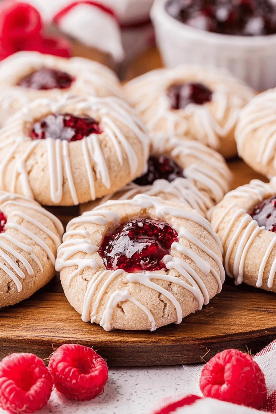 Butter, sugars—cream them till fluffy and pale, then the egg goes in, then comes the moment where you decide if you’re pressing the thumb divots now or after they chill. (Chill first. Trust me.) Thirty minutes in the fridge locks everything in place, then 13 minutes in a 350°F oven and suddenly you’ve got these little jeweled cookies that look homemade because they are, and the jam gets all glossy and the edges set firm while the center stays soft enough to still feel like something worth eating.