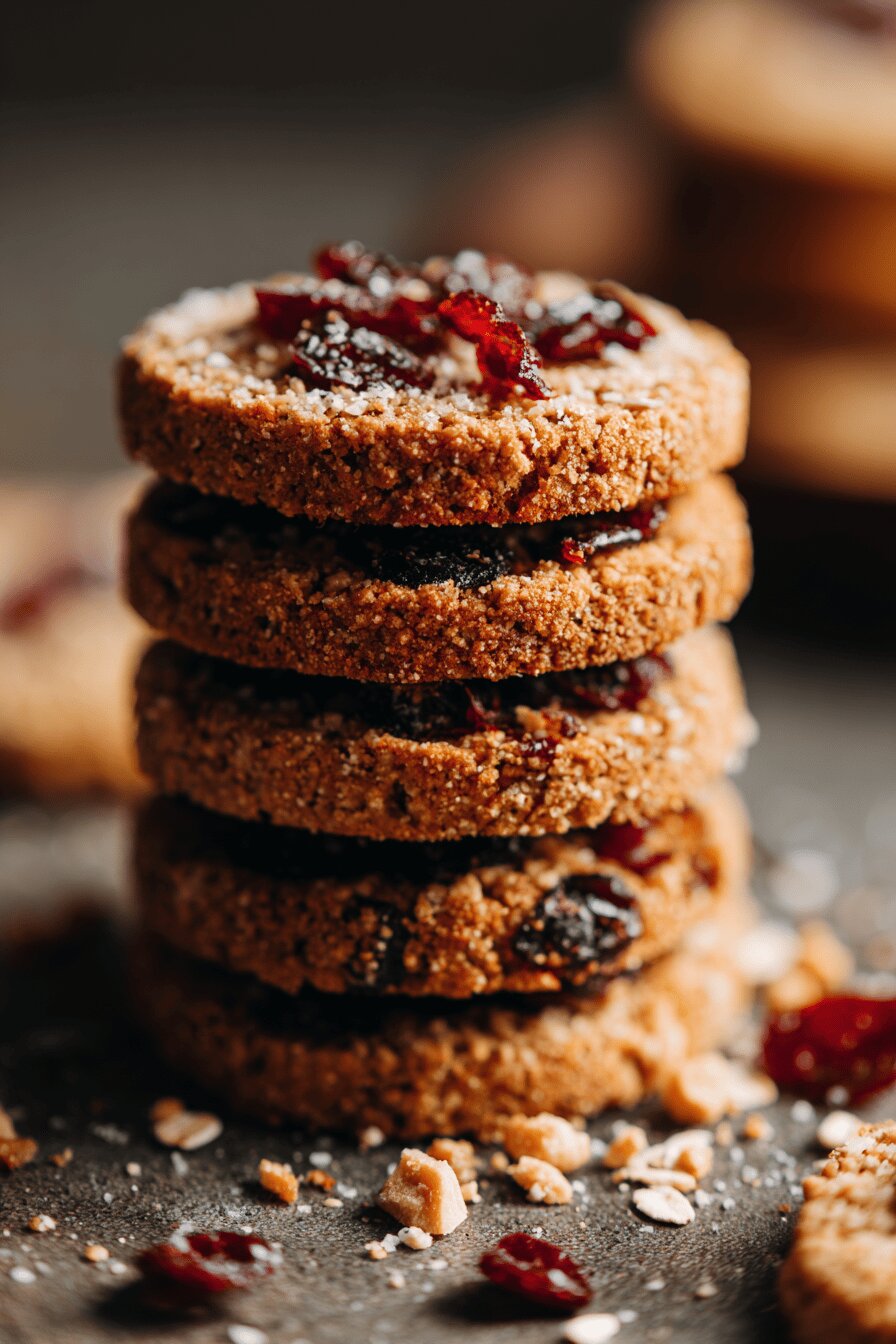 Whole wheat flour adds a robust texture, more fiber, and nuttiness, shifting from the original all-purpose flour. Almond meal replaced some flour to introduce a slight richness and tender crumb but also reduce gluten a touch. Swapping baking soda for baking powder means more lift and a slightly different crumb, but half teaspoon adjustments keep balance. Coconut sugar is less sweet than brown and lends caramel notes while holding the layering well when packed. Dried cranberries exchange for chocolate chunks, a tart-and-sweet switch adding chew and color contrast. Old-fashioned rolled oats bring chew and tooth over quick oats’ soft melting. Salt stays minimal, just a whisper to balance sweetness without overpowering layers.