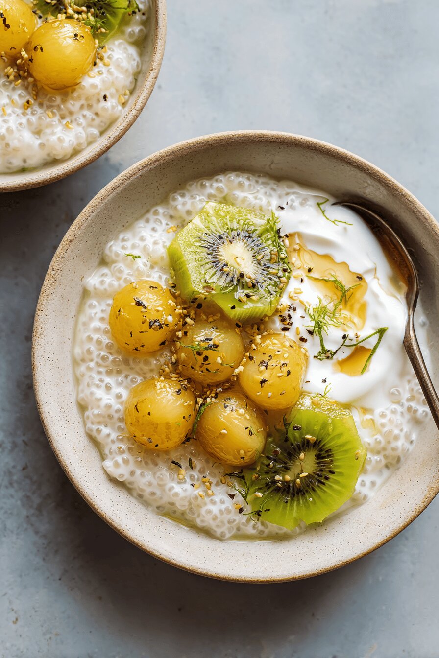 - Before serving, stir tapioca to loosen. Spoon into bowls, dollop yogurt atop, scatter kiwi pieces. Drizzle honey or agave to taste, adds bright sweetness against creamy base.