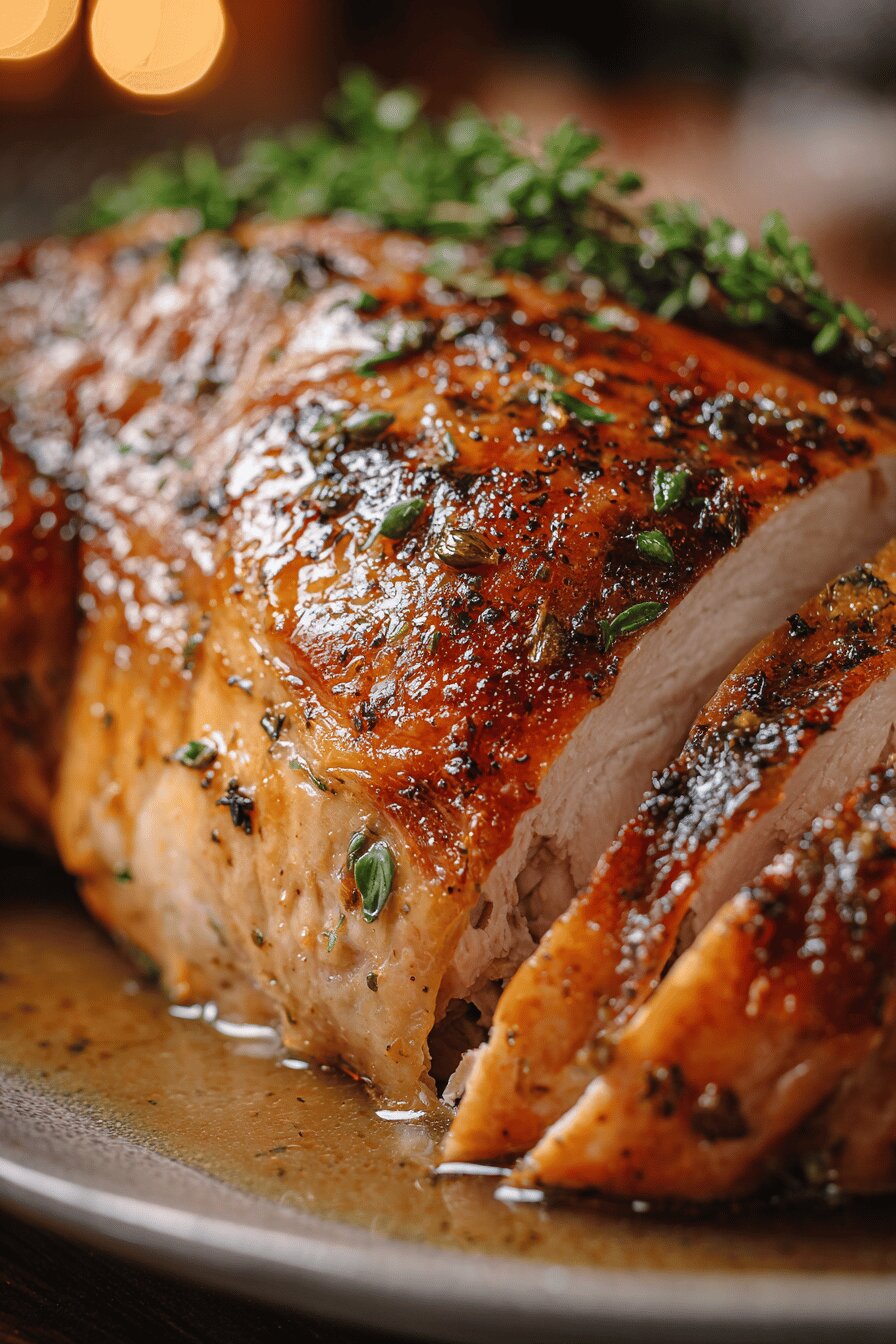 - 💡 Butter melting under skin bastes breast internally, keeps moist. Spread thick chunks evenly but carefully. Don’t tear skin. If oven uneven, use probe thermometer with wire, leave in. Skin crackles with faint hissing, bubbling butter visible edges. If skin browns too fast, loosely tent foil mid-roast then remove last 10 minutes for crisp finish. Avoid overcrowding pan; air circulation critical.