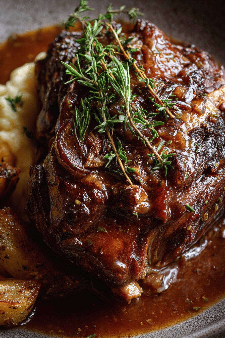 - 💡 Use dry sherry instead of wine for the braise because it adds a nutty, dry, complex taste. Pour evenly over lamb and tuck fresh thyme sprigs beside to infuse herbal aroma slowly. Cover pot tightly to trap moisture and ensure tender, fall apart meat after nearly seven hours in oven.