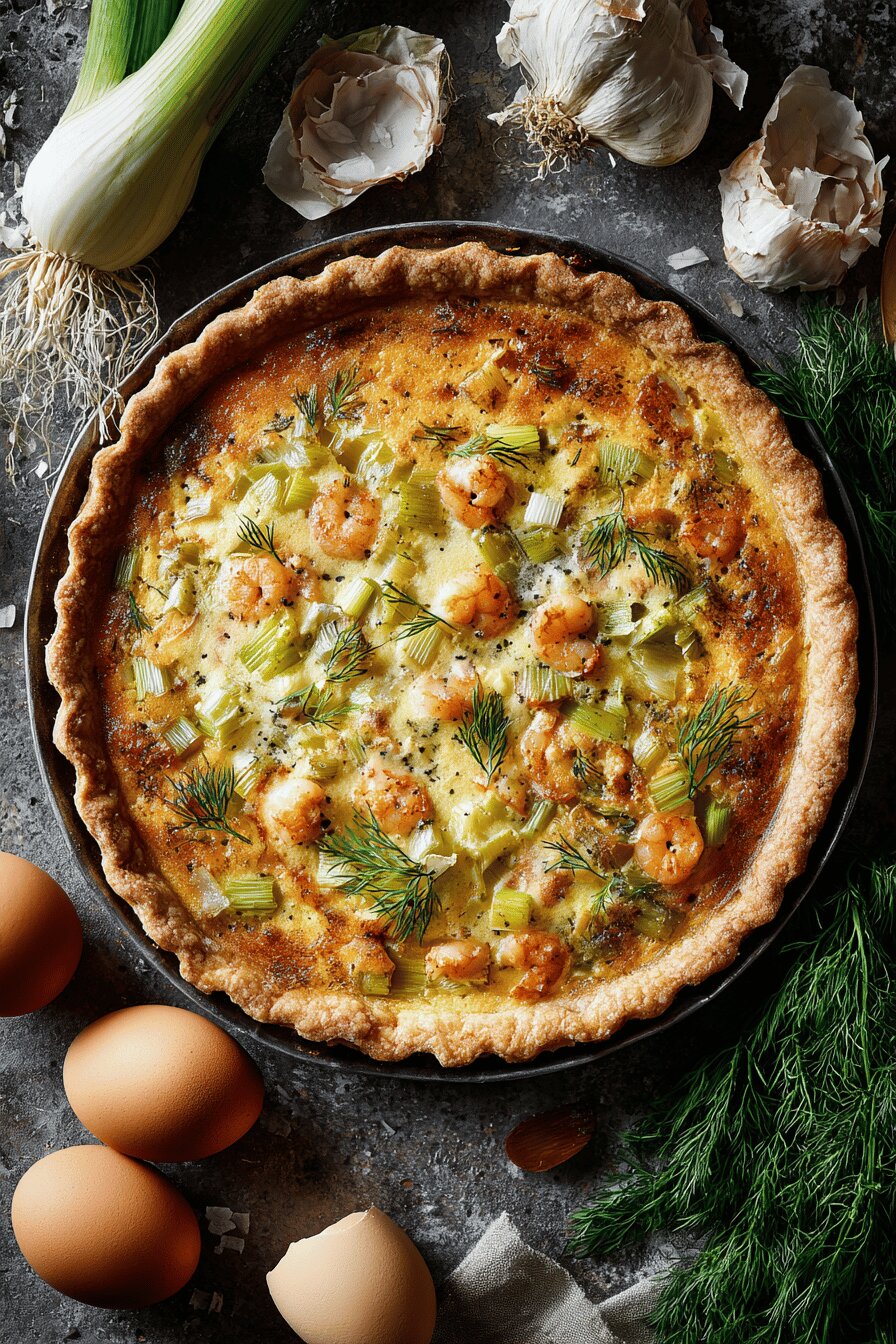 - Chill dough aggressively to keep flakiness, use cold butter always. Substitute oat milk for lighter body but feel free to use whole milk or cream if wanting richness and classic mouthfeel. Parmesan in dough adds subtle umami; if cheese not available, use a pinch of sea salt and a dash of smoked paprika to deepen crust flavor. Dill switched in for thyme for fresher anise notes; tarragon would be worth a try if available. Saute shallot gently to avoid bitterness that raw garlic can bring at times; garlic may overpower delicate shrimp and leek.