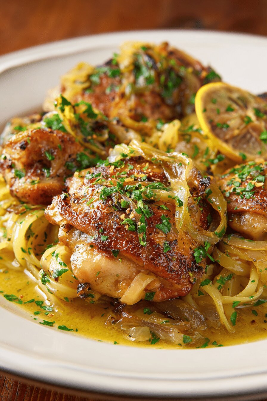 - 💡 Brown chicken in batches; avoid crowding pan or steam, color matters. Medium-high heat after browning for onions, don’t rush to soften; patience unlocks sweetness not bitterness. Use thin lemon zest slices not wedges for oils released gradually, adds subtle brightness. Stir often in simmer but don’t break chicken pieces. Using dry vermouth instead of wine gives sharper, herbaceous flavor layer; don’t skip this swap, changes whole aroma.