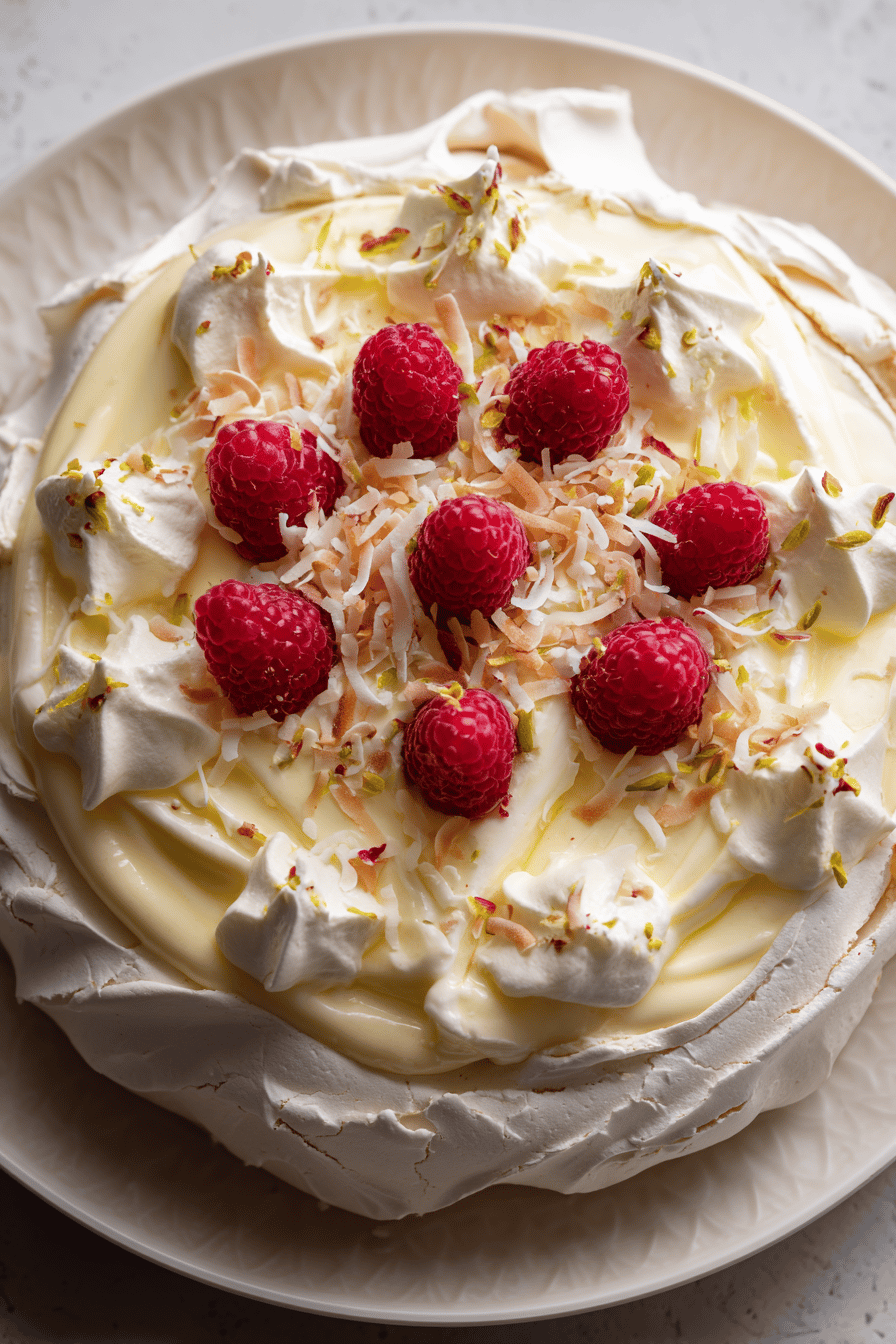- 💡 Choose fresh raspberries firm but ripe, too much juice makes meringue soggy quickly. Coconut adds mild sweetness and chew contrast; swap pistachios cautiously if allergies, changes flavor profile. Assemble just before serving to maintain crunch; meringue sags within 2 hours if left open.
