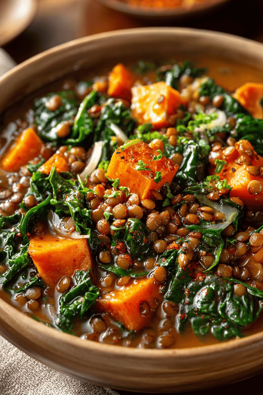 - Serve hot in rustic bowls. Notice hearty aroma of ginger and paprika mingling with earthiness. Thick broth clinging to tender lentils and vibrant kale makes spoonfuls deeply satisfying.