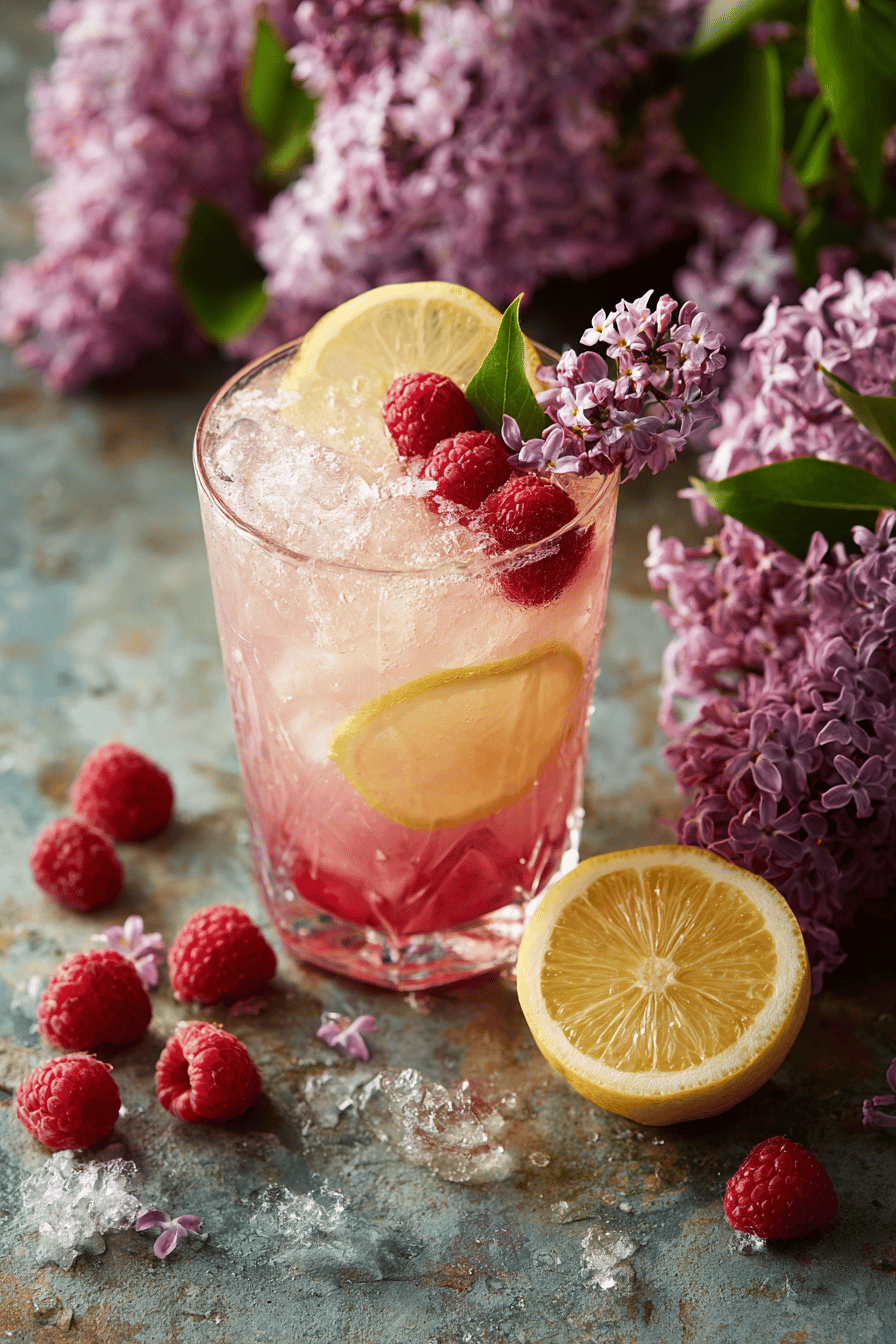 - 💡 Use crushed ice not cubes. Faster chill but slow dilution. Bubbles survive longer. Sparkling water goes in first to keep fizz alive. Syrup after. Lemon juice just before vodka. Stir gently. Over stirring kills sparkle. Garnish last, clean. Fresh lilac sprig and lemon wedge for aroma plus pop. Keep syrup chilled till pour time. Make syrup ahead, but strain only once cool. Raspberry optional. Adds bright acid, no overpowering color or sweetness.