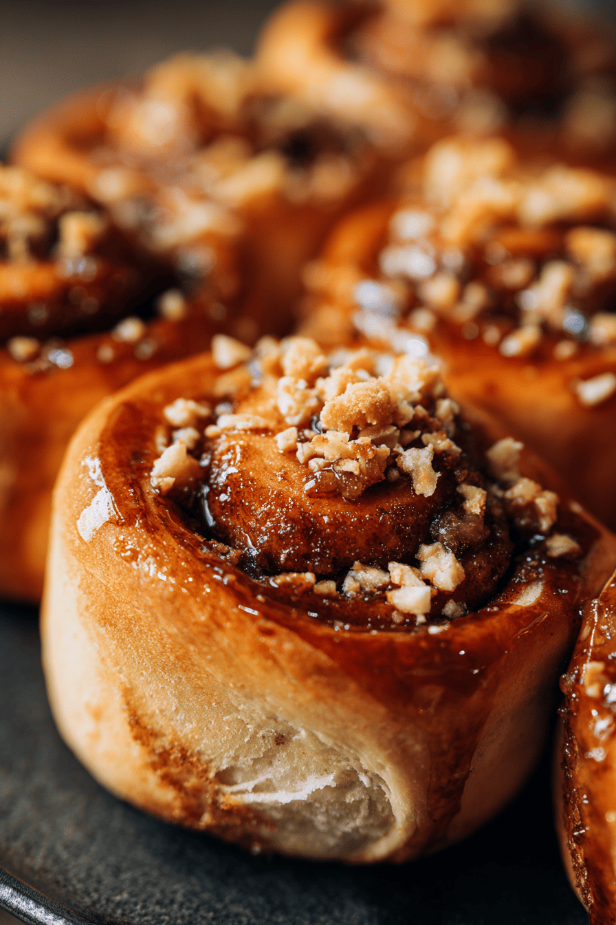 Flour quantity reduced by about 30% for tighter crumb but still tender. Swapping out milk for barley malt syrup changes flavor profile to malted sweetness and enriches dough naturally—adds chewiness and a subtle umami hint. Maple sugar used in dough instead of granulated sugar to deepen flavor. Filling switches brown sugar to partial maple sugar and adds cardamom beyond the cinnamon for aromatic interest. Butter amounts trimmed moderately to balance dough hydration; still enough fat to keep tenderness. Syrup for soaking now a dark robust maple syrup; hot to absorb fast. Glaze uses whipped maple butter container slightly less volume and maple flakes added as a texture element, optional but recommended.
