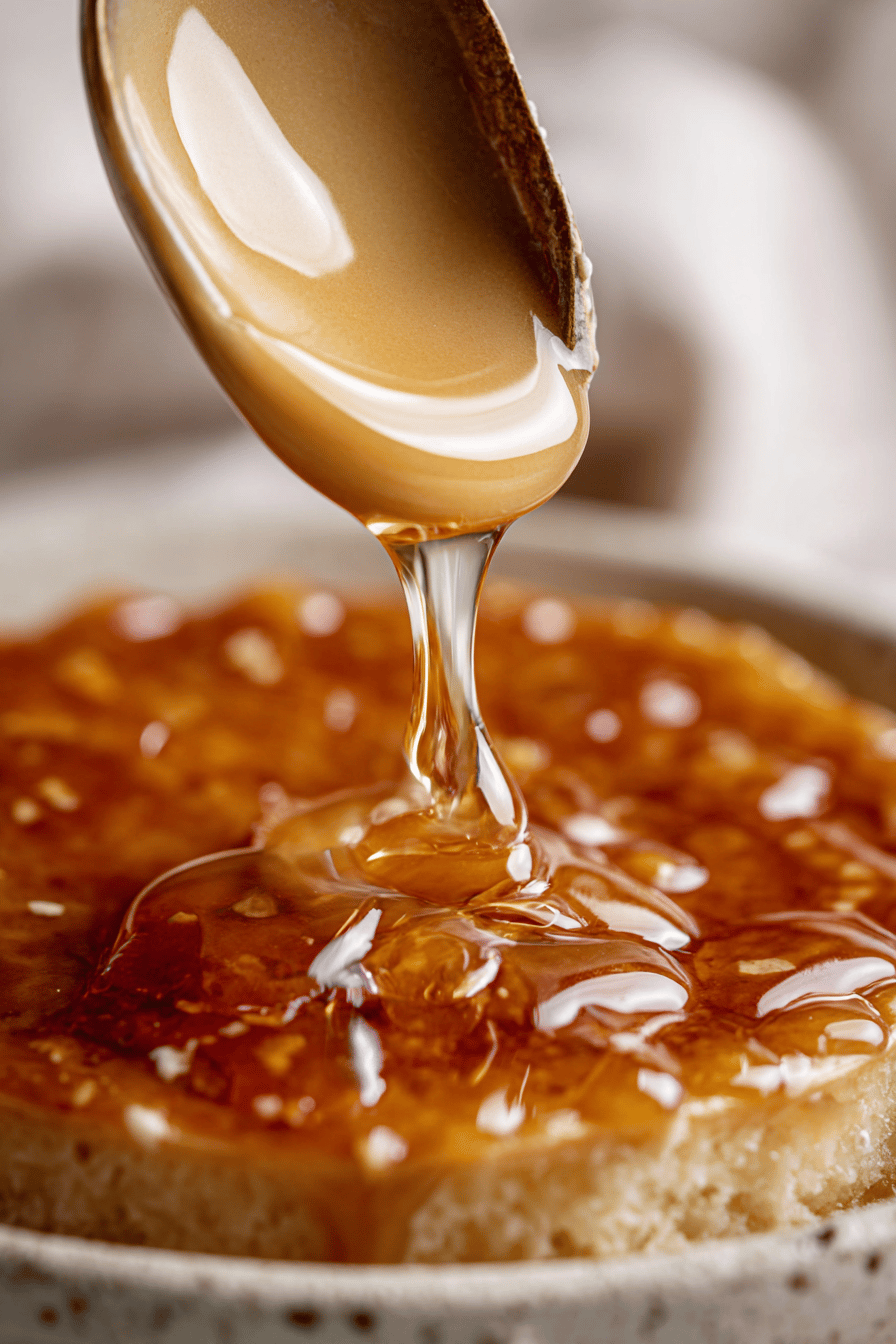 Replacing half the original fat component with coconut cream ups the richness while ditching dairy. Honey instead of maple syrup lends floral top notes, less robustness but more dimension. Arrowroot powder thickens differently, clearer gel, less pasty, easier to manage on low heat. Vanilla extract — a small addition but changes overall flavor drastically, a warmth underneath the sharp sweetness. Quantities scaled down on sweetener and increased cream to balance thickness and flavor properly. Together, these shifts form a sauce less like syrup, more like a velvety glaze or drizzle. Suitable for lactose-free diets, and with a slight tropical hint combined into classic maple dessert traditions.