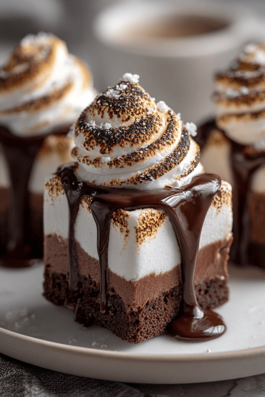 Dark chocolate cubes infused with condensed milk and cream, set firm. Soft marshmallow topping whipped from gelatin, syrup, cocoa powder, and vanilla, piped and lightly toasted. Each cube served with hot milk to melt and stir creating a rich drink. Variations include swapping dark chocolate for ruby chocolate and using honey instead of syrup for a floral twist. Steps shifted for better timing, ingredient amounts slightly altered to balance sweetness and texture. A handheld cozy treat transforming hot chocolate into an interactive snack.