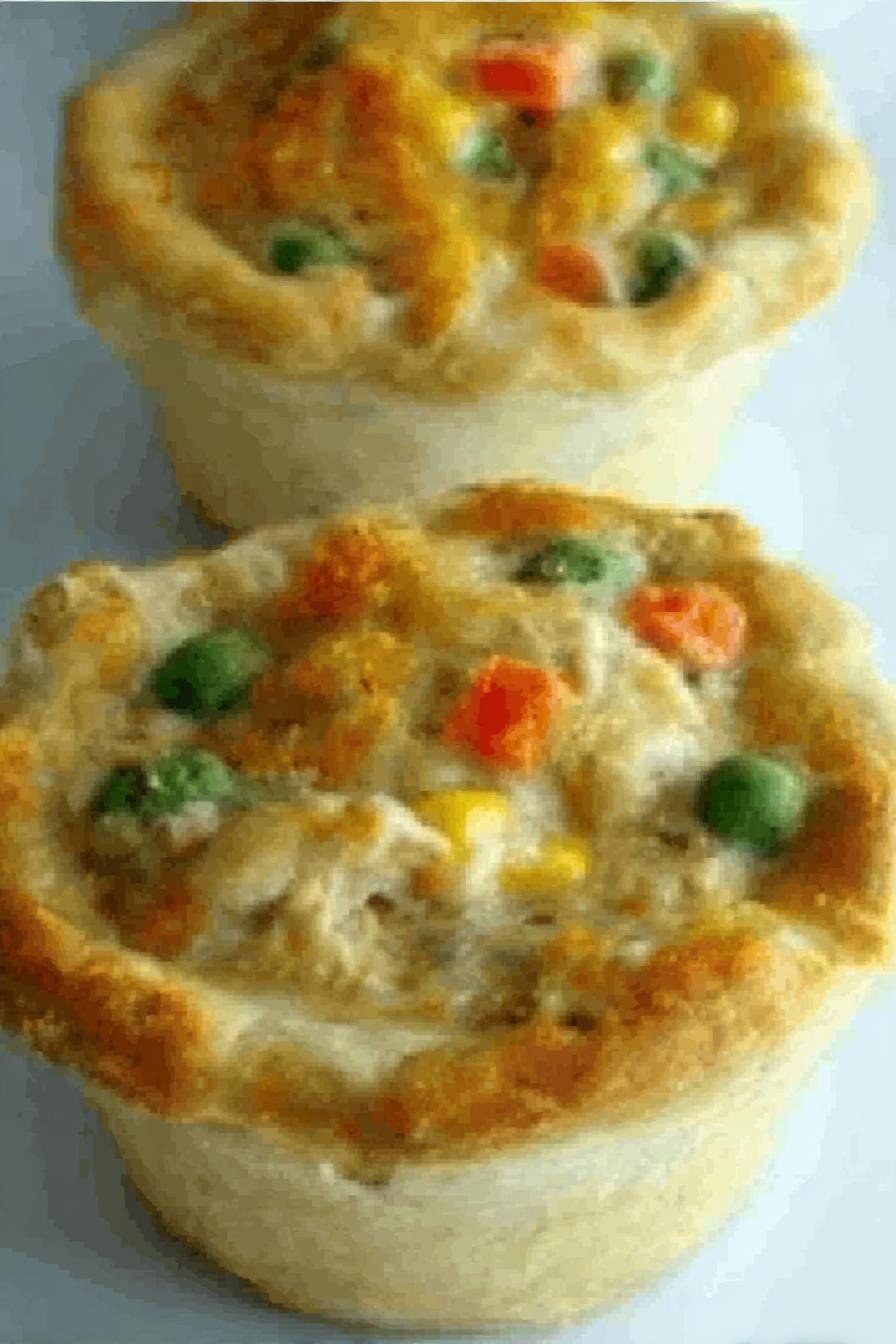 Drain peas and carrots super well. Keep filling thick with cheese and condensed soup. Bake at correct temp not lower. Rest muffins before removal to firm crust. Spray pan so crust doesn’t stick and mess shape.