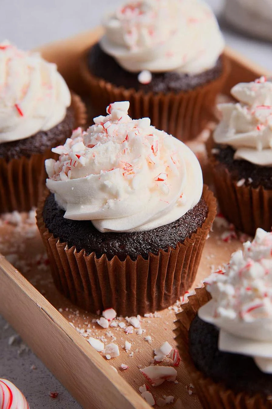 Crushed peppermint candy for the top. Cupcake liners that actually fit your pans — not the flimsy ones that buckle.