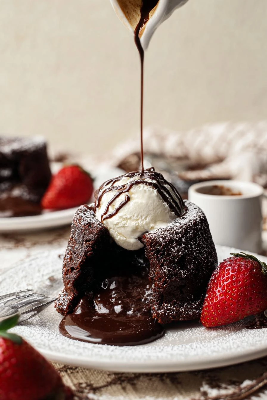Can I serve this chocolate lava cake with something other than ice cream? Whipped cream works. A drizzle of caramel. Honestly, the berries matter more than the cold dairy. But cold dairy is the point. Warm cake, cold side. Balance.