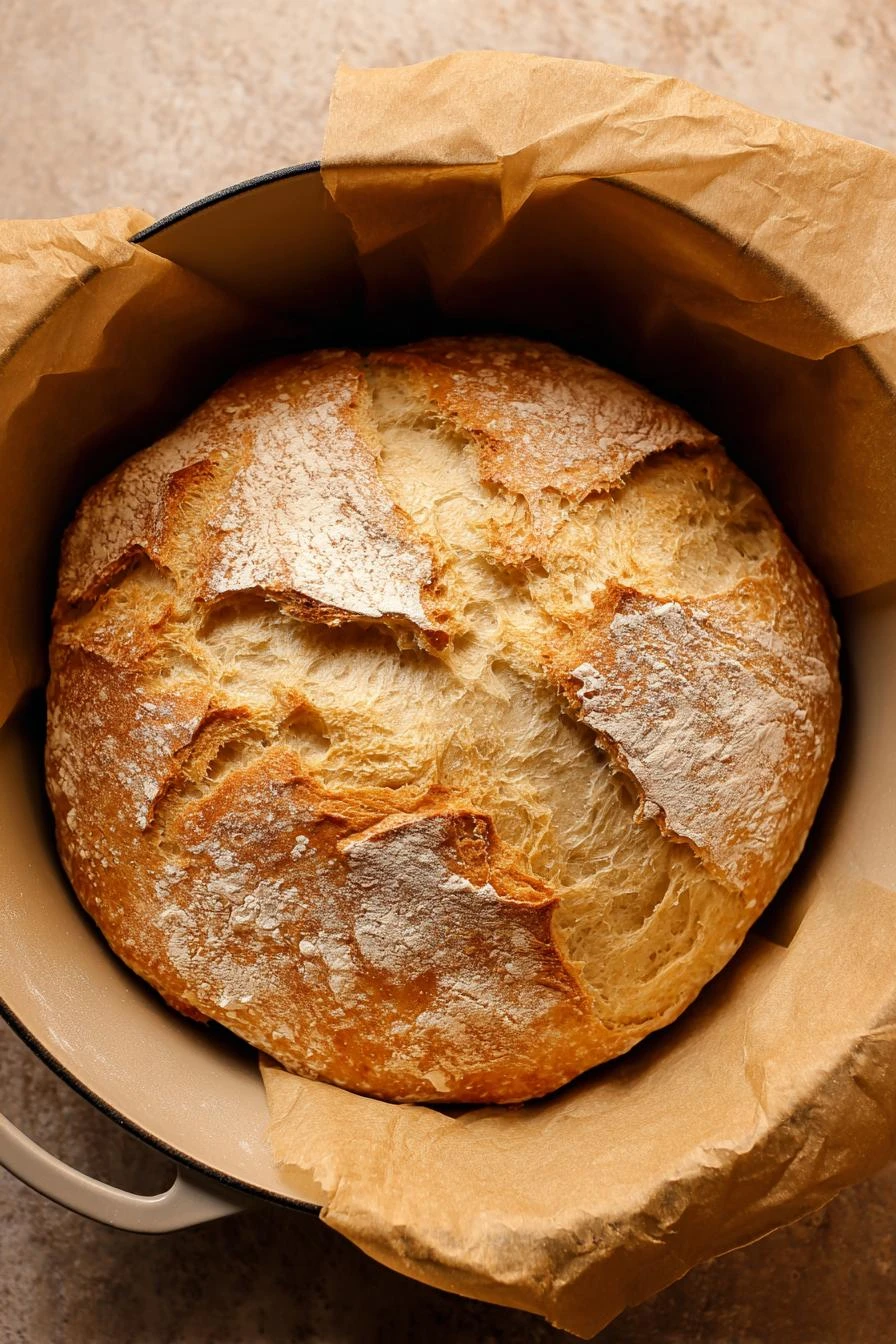- 7 Close lid, shove pot back in oven. Bake 28-33 minutes, smells nutty, rich, crust starts crackling audibly. Peek if needed; steam clouds. Remove lid. Crust changes from pale gold to deep amber in next 12-16 minutes, edges darken but not burn. Watch visually, tap bottom for hollow sound. Smell sharp toast, warm grainy punch. Keep checking.