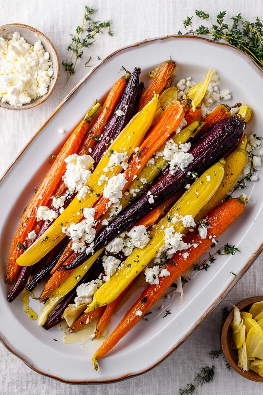 - 💡 Ricotta mix can be chilled ahead to balance warm veggies. Lemon juice brightens but use sparingly or it overpowers. Fresh thyme best, dried feels flat and clumpy. Substitute with oregano or fresh rosemary for different herbal layers. If no ricotta, Greek yogurt or labneh work but change texture and tang — more acid needed to keep zing. Dollop ricotta unevenly, rustic style, so cream melts with carrot heat but doesn’t drown natural sweetness.