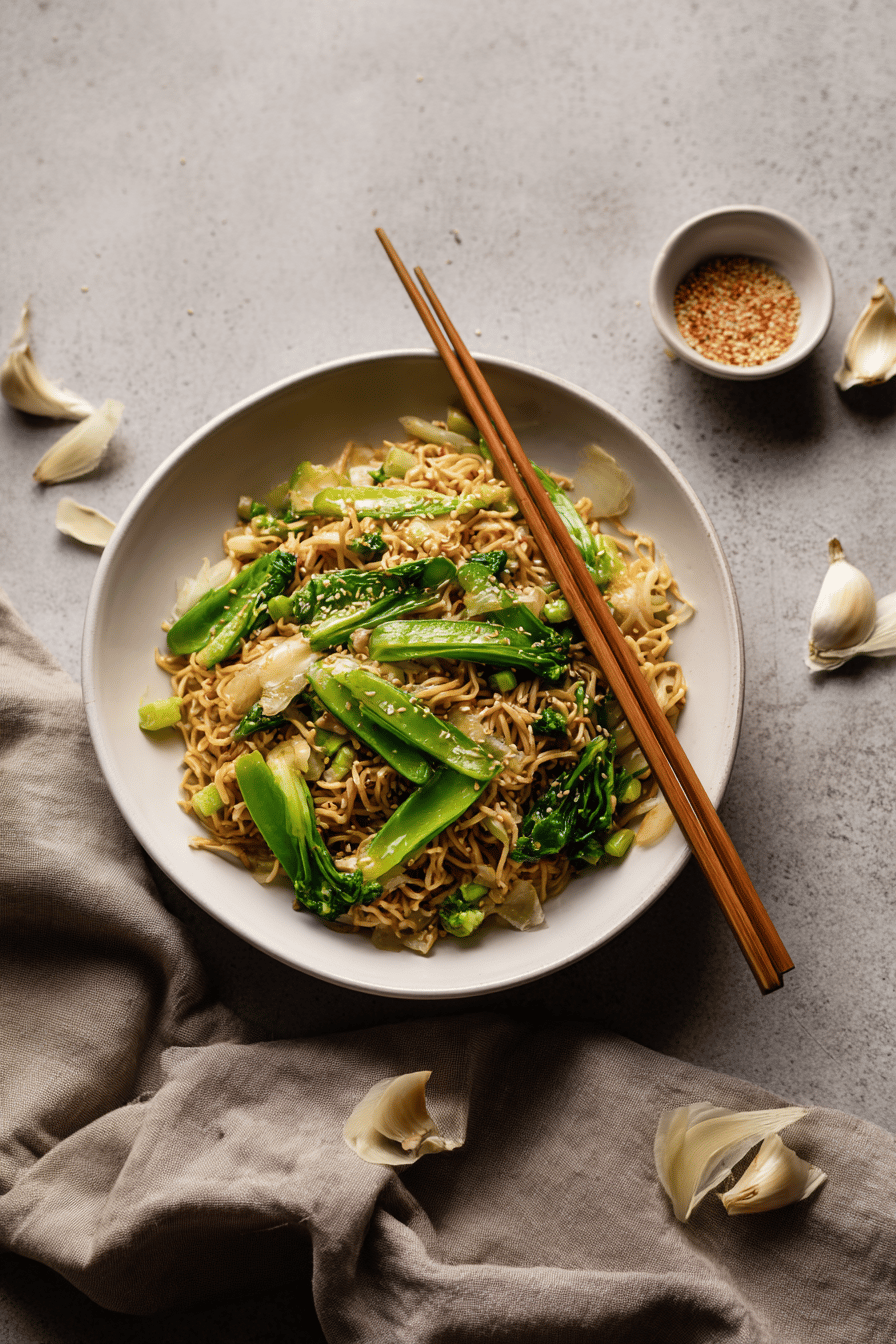 - 💡 If no ramen at hand, chow mein or egg noodles can substitute but dry or drain very well. Shirataki tried once; watery mess if not dried thoroughly first. Watch broth amount in sauce; too much dilutes, too little sticks and clumps noodles. Sugar balances saltiness but adjust by taste. Garlic crush/mince finely—big chunks risk burning, small bits bloom flavor faster. Vegetable oil neutral, good high heat. Olive or butter don’t play nice here—burn or heavy taste. Toss noodles gently to keep from breaking but agitate often to prevent sticking.