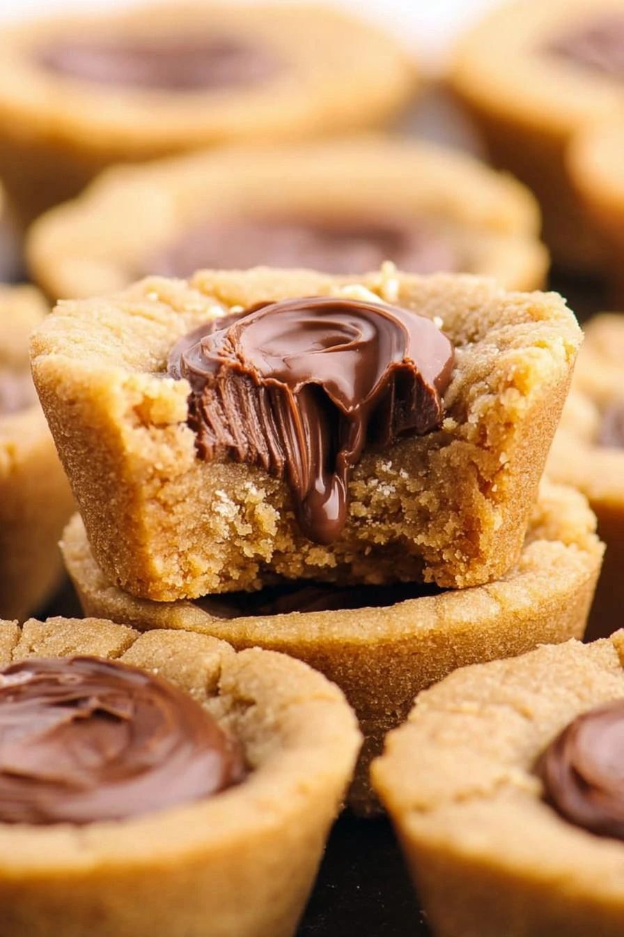 Takes 15 minutes to prep, 14 minutes to bake. Two hours of chill time means you can do it tonight, bake tomorrow. Doesn’t require a mixer — a spatula and some arm power works fine. Chewy peanut butter cookies with melted chocolate centers that hold their shape because you’re baking them in muffin tins instead of on a sheet. No spreading chaos. The chocolate stays where it’s supposed to be. Cold dough rolls easier, shapes stay tight, texture comes out perfect. Tastes like actual peanut butter — natural peanut butter, less sweetness than the stuff with extra sugar. Homemade peanut butter cookie cups with chocolate that costs less than the store version. Coconut oil swap keeps them from being dense; they’re pliable, chewy in the middle, crisp just enough on the edges.