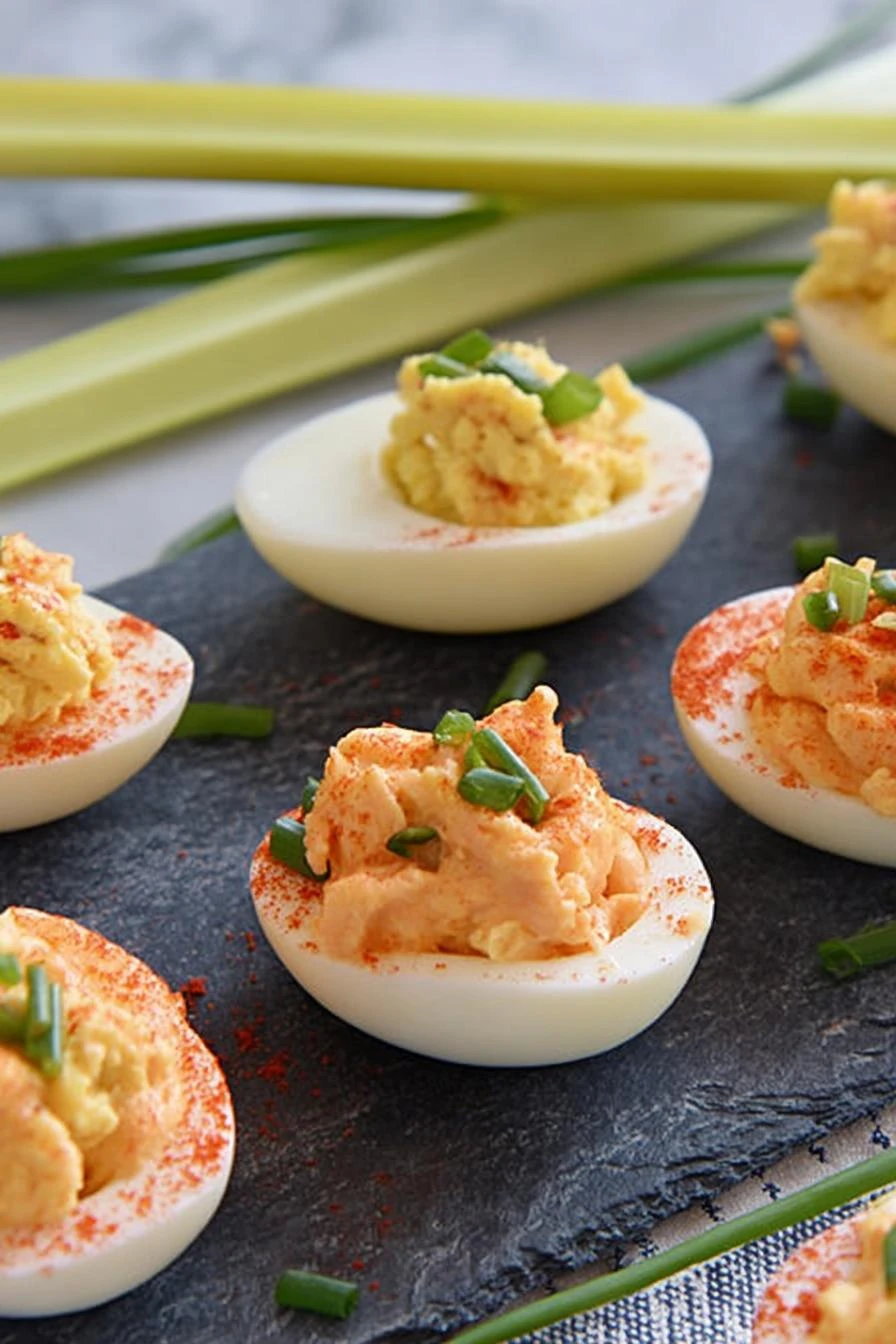 - 💡 Fill whites with small spoon or piping bag for control. Heaping dollops look rustic, small mounds neater. Pimento cheese spread can be store-bought or homemade mixture cheddar mayo pimentos. Add splash milk or cream if cheese too thick and stiff. Chives sprinkle last adds herbal crunch and color pop. Scallions can replace if out of season.
