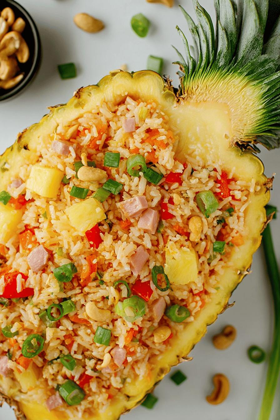 - Fold in pineapple chunks and cashews; cook no more than 1 min until warm. Pineapple should be bright, slightly caramelized at edges; nuts remain crunchy.
