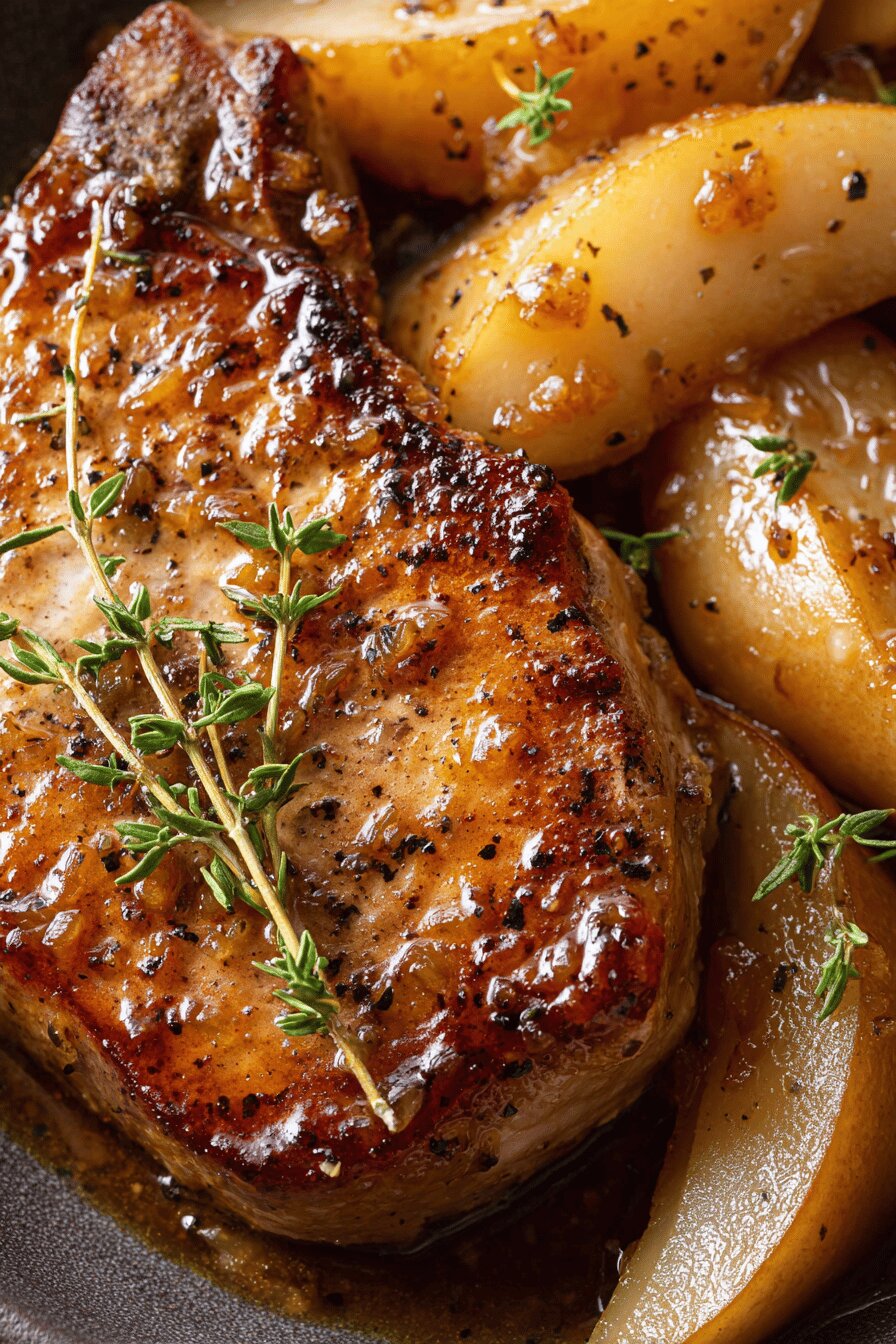 - 💡 Rest meat under foil after cooking 5 min. Lets juices redistribute, avoids dry pork. Meanwhile, reduce broth again to concentrate flavor, thicken glaze. Serve chops and pears warm. Pears lose texture quickly if cold – keep warm gently. Sauce spooned thick over everything adds moisture and ties contrasting sweet, sour, savory elements without separate condiment. Avoid overcrowded pan; cook in batches if needed for even browning.