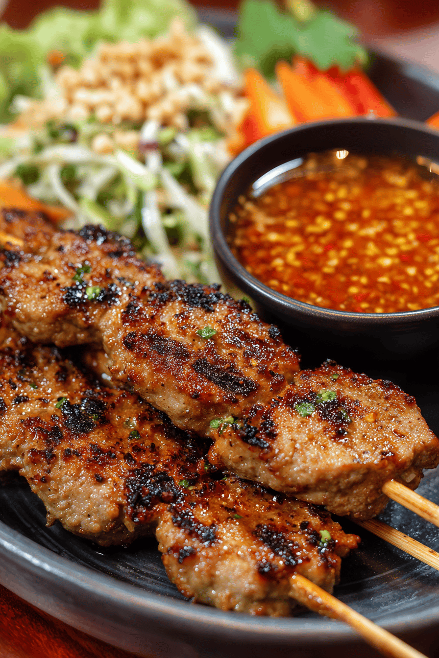 - 💡 Serve skewers hot with reserved sauce for dipping. Carrot-scented couscous adds subtle sweetness, moisture, and fluffy texture. Herb cabbage corn salad brings fresh crunch, slight bitterness, contrast against pork richness. Garnish with fresh herbs like coriander or mint for brightness. The balance between salty, sweet, spicy, crunchy, and fresh elements makes each bite complex but approachable. Don't overload but keep all parts visible on plate.
