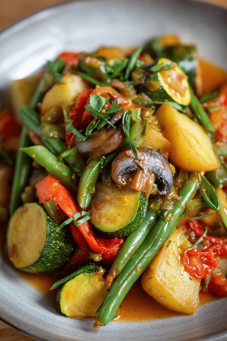- 💡 Add tomatoes and green veggies last. Zucchini, eggplant, beans release water fast, making stew soggy if too early. Stir once gently to keep potato cubes intact. Herbs like thyme or rosemary add subtle background notes but don’t overpower. Salt cautiously at this stage, flavors intensify as it cooks down.
