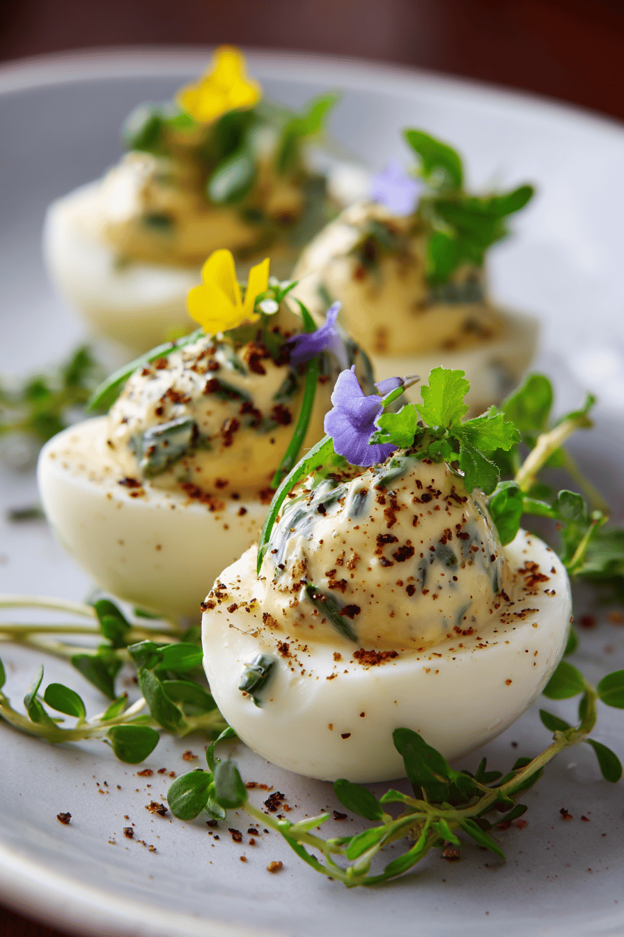 - 💡 Peeling under cold water aids membrane slip and removes tiny shell flakes. Don’t rush crack step. Gentle roll then peel from wide end. Membrane removes easier that way. Dry surface on peeled eggs ruins uniform look. Submerging prevents sticky membranes sticking to fingers or plate. Tarring chopped finely, not bruised leaves. Fresh herb aroma concentrated without bitterness. Too much tarragon and lemon shifts balance. Small blend of grainy mustard, citrus acid, and olive oil body needed. Olive oil chosen for subtle fruitiness not neutrality. Texture contrasts key between creamy, grainy, soft.