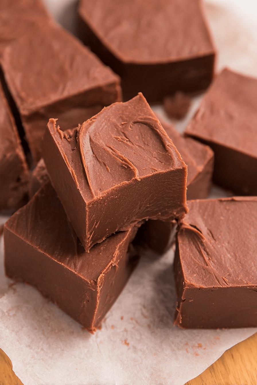 - Use parchment overhang to lift fudge out and slice into 36 small squares. Sharp knife, wipe between cuts to avoid smudging.