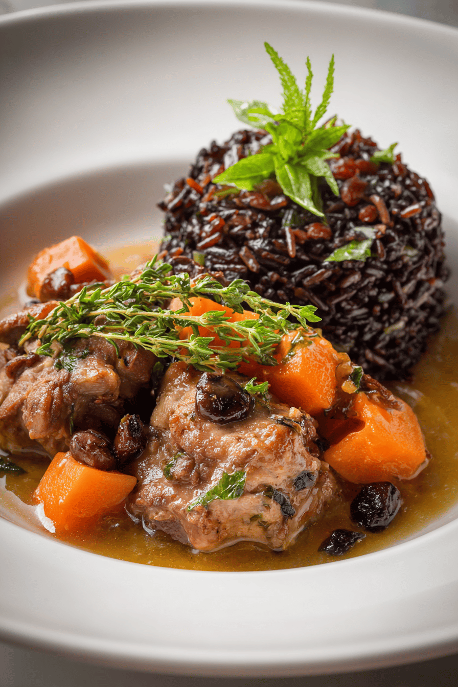 - Serve alongside djon djon black mushroom rice or any earthy starch to balance sweetness and gamey notes.