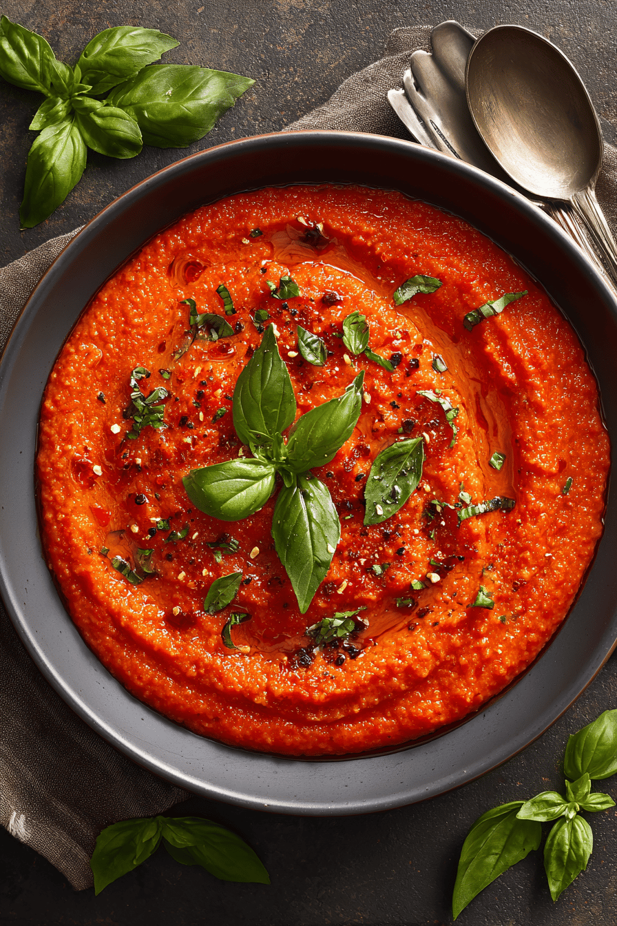 - 💡 Blend off heat; pulse not puree all. Rustic chunks add texture contrast, some lumps okay. Return to warm gently. Adjust salt last; acidity can punch hard so sugar or olive oil calms. Reheat low heat, stir. Thickens on cooling; add splash water or broth if too dense next day. Store airtight fridge up to 4 days or freeze portions.