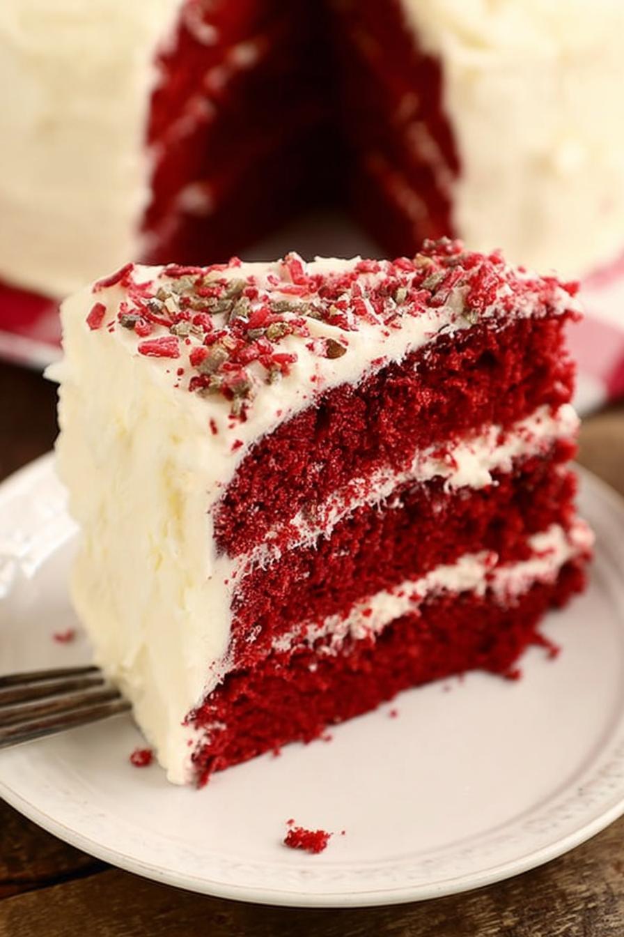Everybody’s done the red velvet round a dozen ways. But many times ended up with dense bricks or bland sweetness that crawls past the tongue. I’ve scraped batter off my mixer more times than I can count. Learned that acid and fat balance crucial—vinegar no joke, gives you that slight bite after the first sweet hit. And cake flour means soft crumb, no rough edges. I swapped pecans for walnuts once, made the frosting whipped lighter, and, oh, that crunch. Toast your nuts to awaken oils, don’t add raw. Color? Real gel food coloring, not the bottled stuff—the difference shows in vividness. Stop watching the clock too; smell the cake, see the shrink from sides. It signals done better than any timer. Trying to keep every crumb tender but hold shape, that’s the trick I hunt. Frosting needs patience, treat it like a delicate cloud, else it becomes grainy mess. The vinegar, cocoa, and sweet — it should sing a balanced song on your tongue, not shout. Don’t expect perfect steps every try — learn the signs your batter and cake give you.