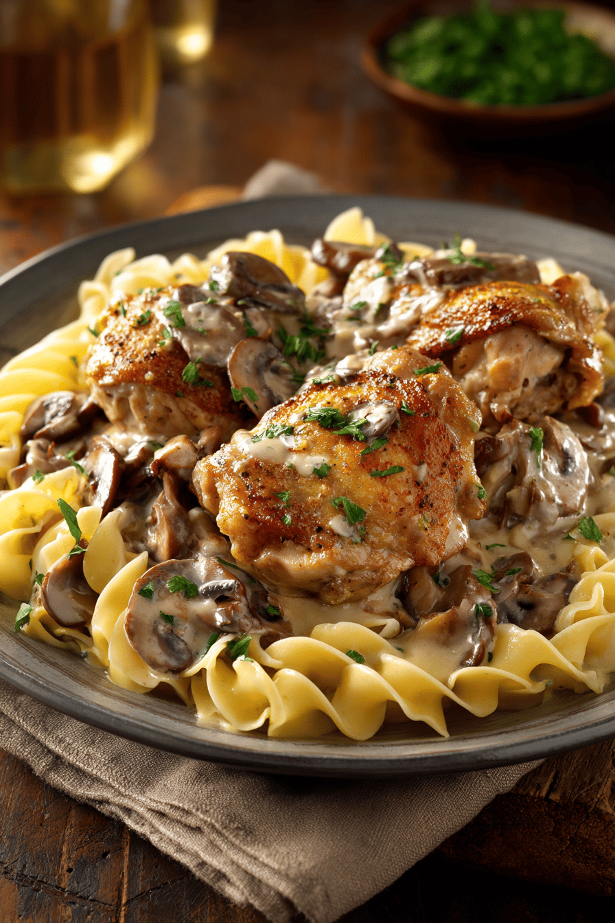 - Salt and pepper now. Taste. Cream temp lowers sauce—adjust accordingly. If too thin, simmer uncovered few more min. Sauce should be velvety, mushrooms soft and flavorful, chicken easily pierced but not falling apart.