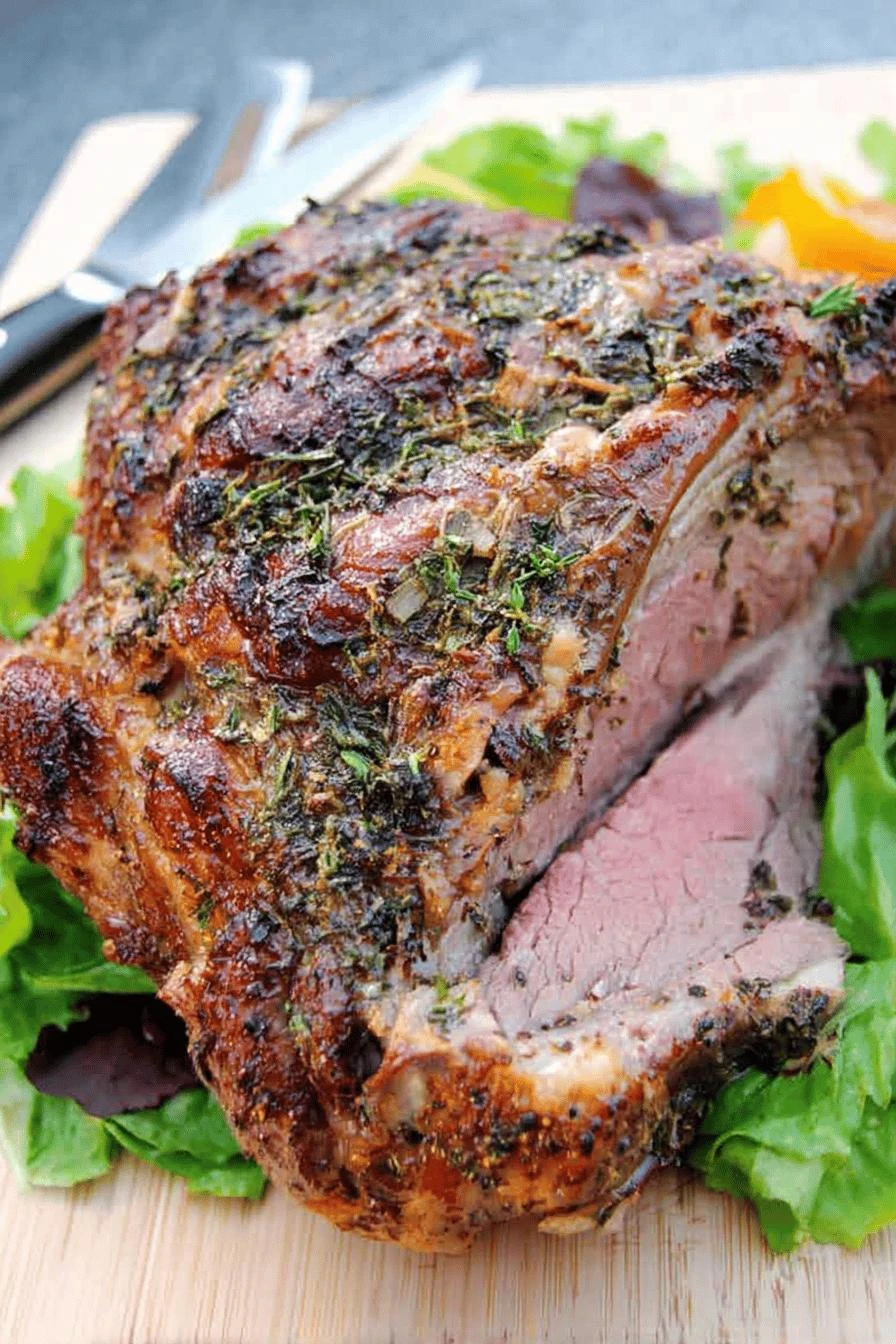 Takes 65 minutes total if the oven cooperates, which it usually does. Feels like you’re doing something hard — studding garlic, mustard coating, two-temperature blast — but it’s just meat and three ingredients that stick. Crispy crust on the outside because of the high heat start. Inside stays pink and loose if you don’t leave it too long. Garlic mellows out instead of staying sharp. The herbs don’t taste like herbs anymore, they taste like char and something deeper. Works for weeknight dinner. Works for when people come over. Left over cold the next day tastes better than hot, somehow.