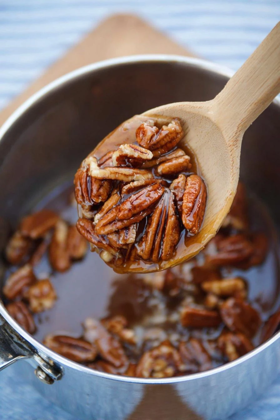 - 💡 Salt always last, fleur de sel ideal for crunch and salt pop. Fine salts dissolve too fast, flatten flavor edges. Pecans fold gently after sauce thickens, toasting nuts first unlocks oils, deepens nutty bite more than raw. Toss nuts lightly avoid breakage.
