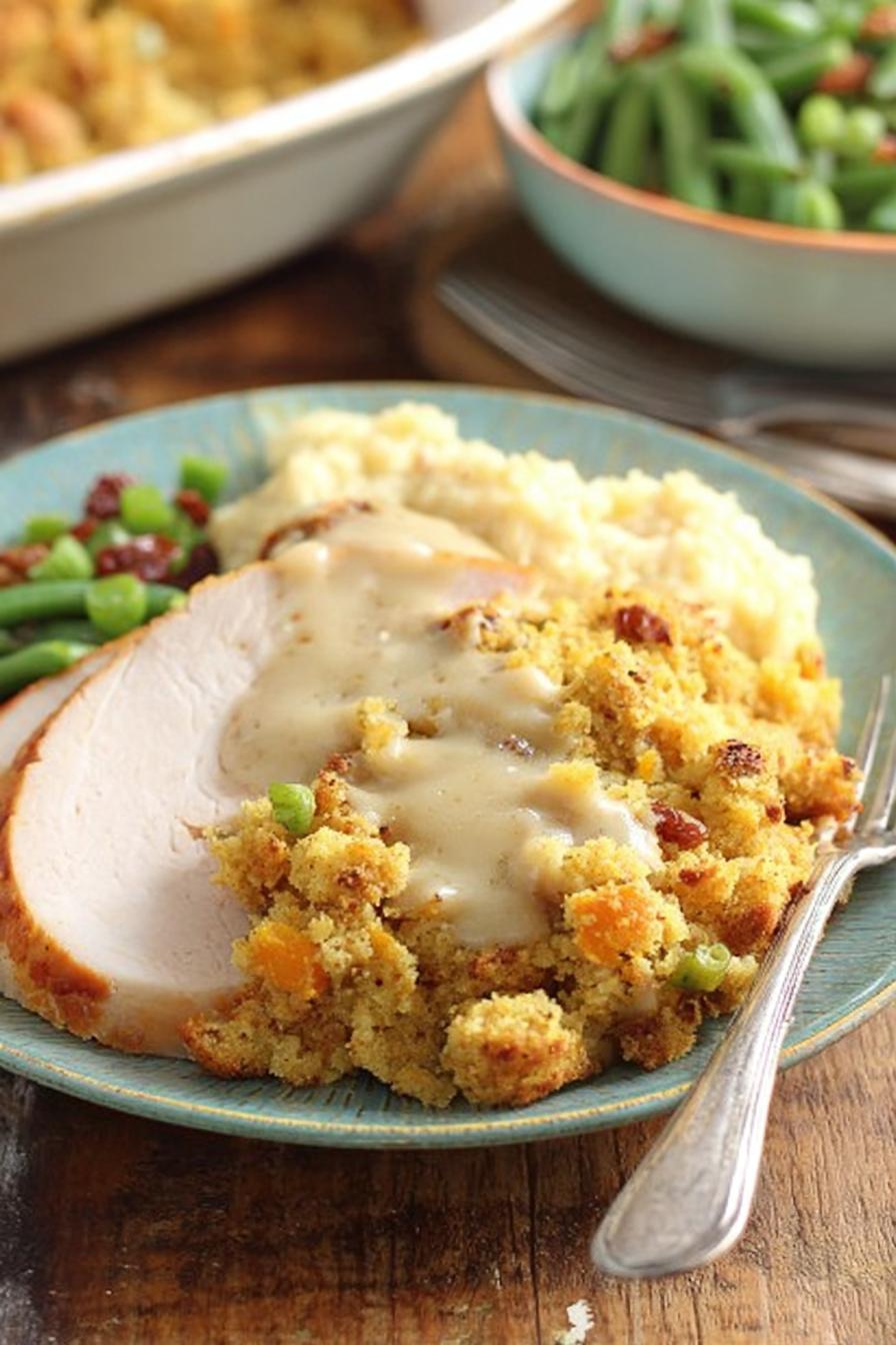 Add broth gradually, mix gently but enough. Day-old cornbread holds moisture better. Don’t overbake. Rest 10 minutes to let juices settle. If dry serve with gravy or broth on side.