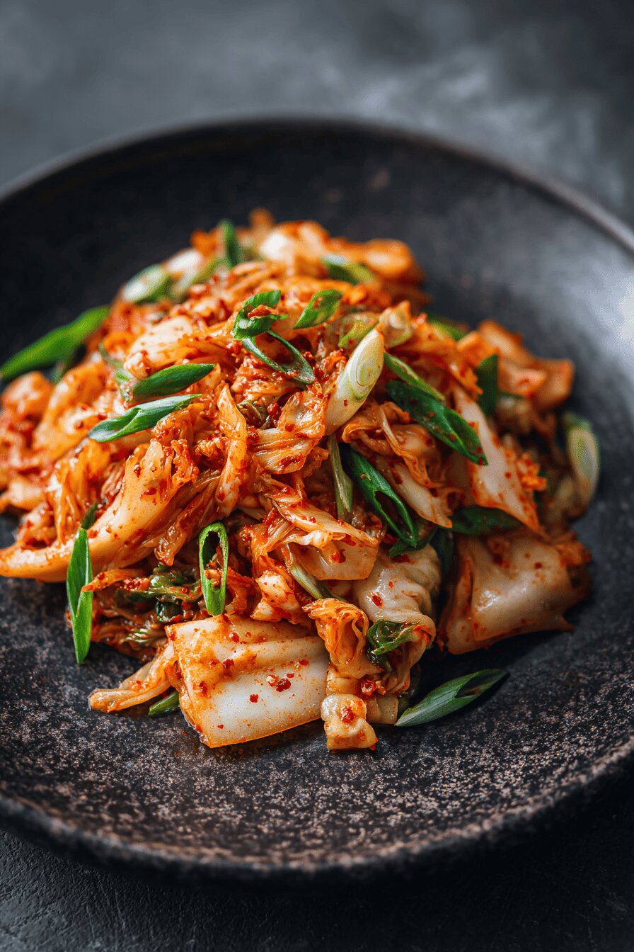 - 💡 Pulse scallion whites, garlic, Asian pear, smoky paprika-cayenne mix, ginger and tamari till thick but not puree smooth. Texture bursts of flavor still needed. Scallion greens chopped large and hand-kneaded in last for fresh color contrast and bite. Wear gloves—garlic plus red chili stains linger otherwise. Mixing unevenly means flavor and ferment uneven—don’t skip kneading.