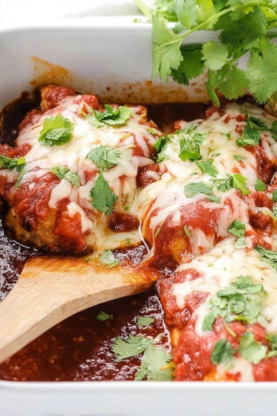 Tastes like you spent time on it. Doesn’t require anything fancy — chunky salsa, cheddar, chicken breasts. Mexican flavors without the fuss.