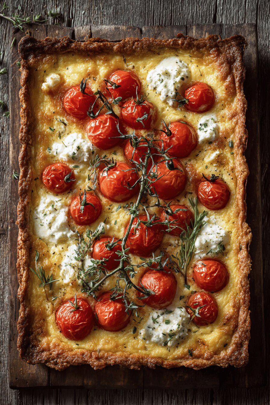 - 💡 Rest tart outside oven at least 10 minutes before slicing or serving. Filling firms on cooling. Remove vine clusters carefully to allow tomatoes to separate intact. Use lemon zest next time in filling for brightness but add after herb folding. Store dough tightly wrapped frozen for up to a month to save prep time.