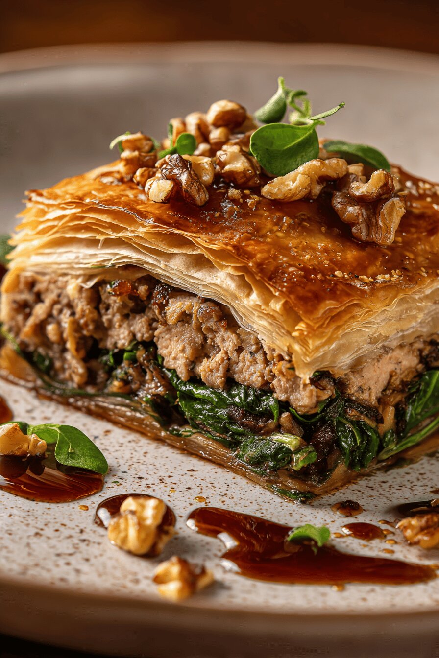 - 6. Salt and pepper generously here; filling will need punch to balance buttery crust later. Remove from heat, cool slightly before adding walnuts—gives that surprise crunch in creamy meat mix.