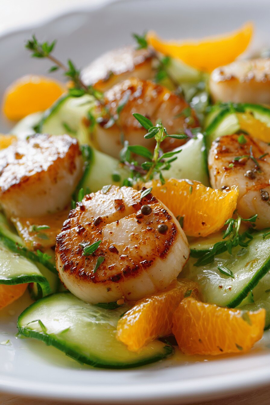 - 💡 Rest scallops after sear. Plate uncovered, five minutes minimum to lock texture. Cutting hot scallops leads to mushy bits, wait for warm not piping hot. Slicing medallions thin makes salad less clunky. Fold fruit and cucumber gently, dress last moment to keep crunch. Taste final seasoning—sometimes lemon or salt boost is needed before plating.