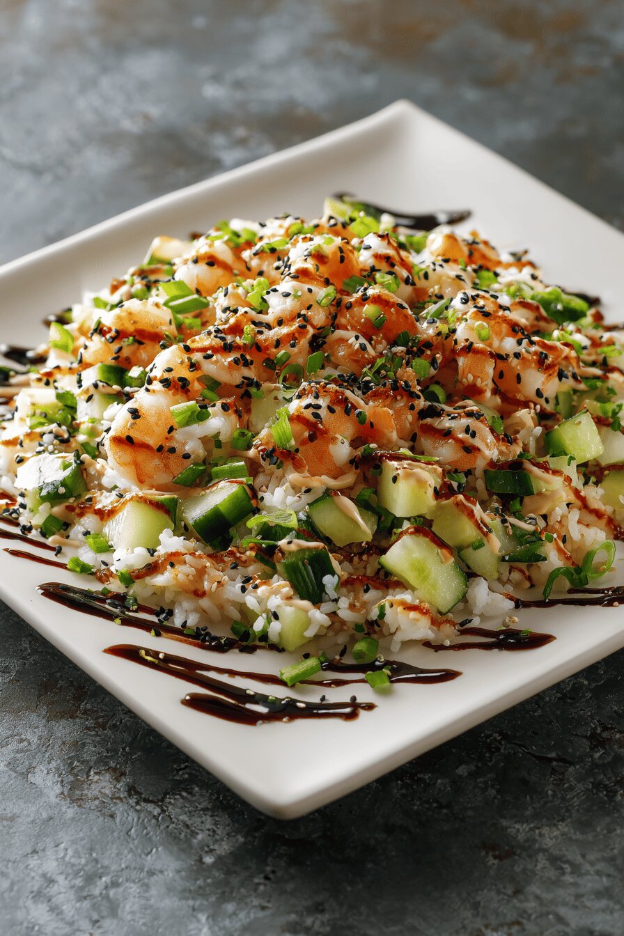 - 💡 Shrimp needs to be dry. Fresh or thawed, paper towel is essential or salad becomes watery instead of crunchy. Salt shrimp lightly to pull sweetness forward, toss gently to keep pieces intact. Mayo drizzle is mostly umami and cream, not fat overload — homemade mayo with toasted sesame oil whips up fast if store-bought too thick. Teriyaki optional but adds unexpected caramel sweetness layer, thin lines work better than pools to avoid soggy salad.