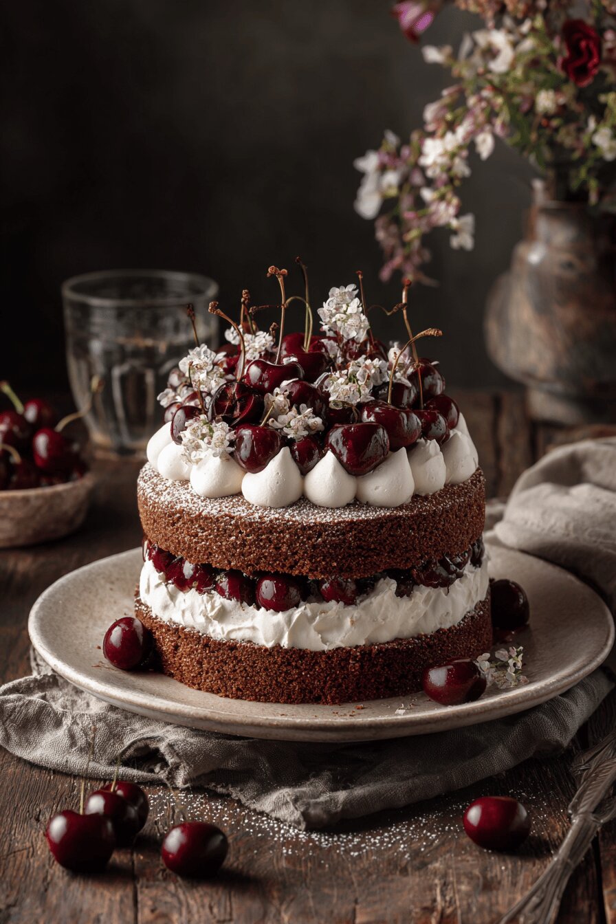 - 💡 Whip chantilly medium-firm, not stiff-dry or buttery. Watch carefully. Spread about two-thirds chantilly over cake top, leave shallow well for griottes. Spoon cooled griottes gently into cream well, scatter reserved cherries atop for rustic look. Finish with remaining chantilly. Microplane fresh dark chocolate flakes on top for texture and aroma. Chill uncovered 2+ hours for flavors to marry, cream to stabilize; serve cold but avoid fridge-chilly to keep flavor alive.