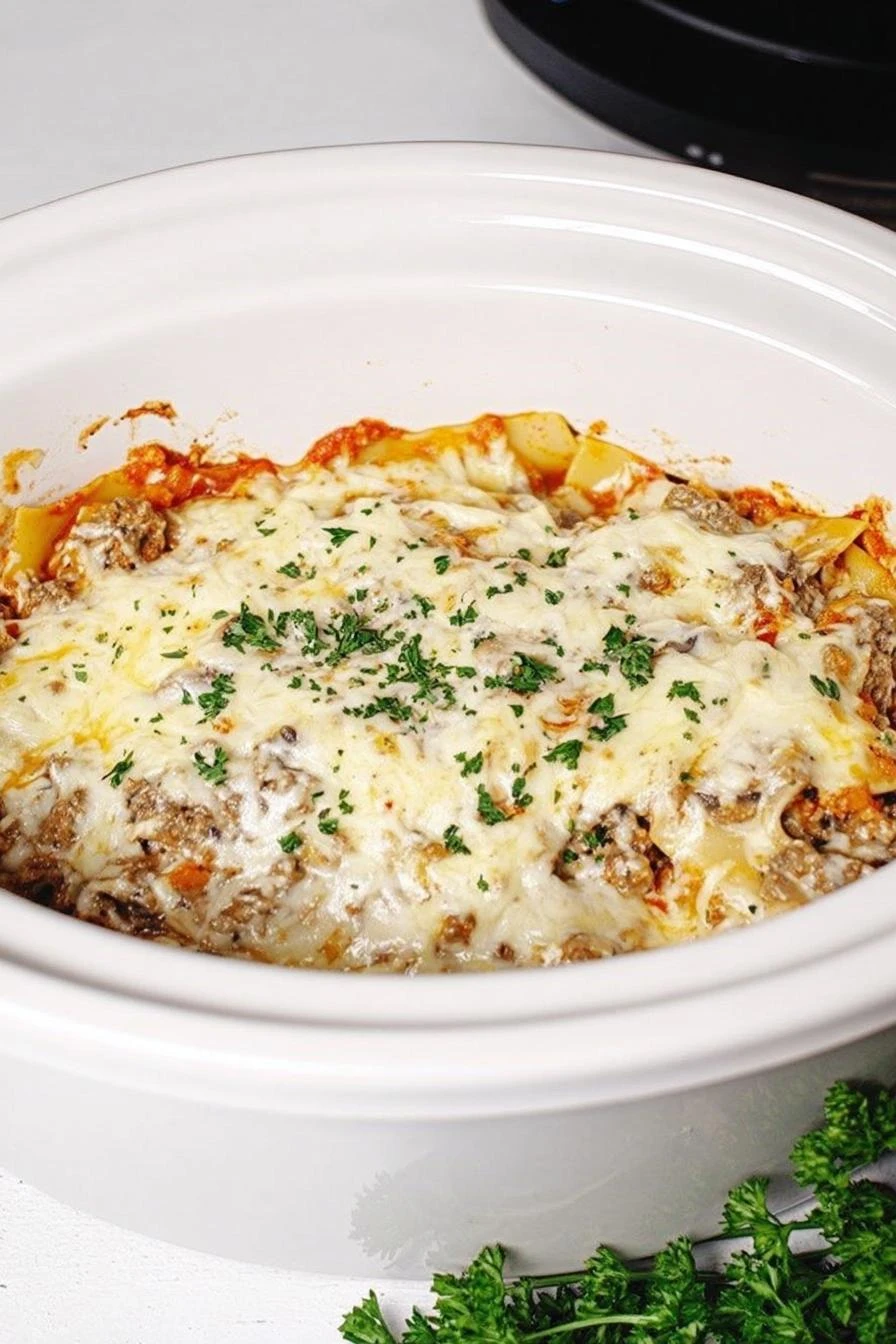 Takes 15 minutes of actual work, then the slow cooker does the rest for 2 hours. Nobody’s standing over the stove. Comfort food that tastes like you cooked all day but didn’t. Works for weeknight dinner or when people are coming over and you want it to seem effortless. The ravioli doesn’t turn to mush because you’re not boiling it—it steams in sauce and cheese instead. Totally different texture. Sausage throughout every bite, not just clumps on top. Layered right, it distributes. Melted cheese on melted cheese. Three kinds of cheese actually. The pecorino gets sharp and salty, mozzarella just goes gooey. Left over? Cold straight from the fridge tastes almost better the next day. Something about the flavors settling.