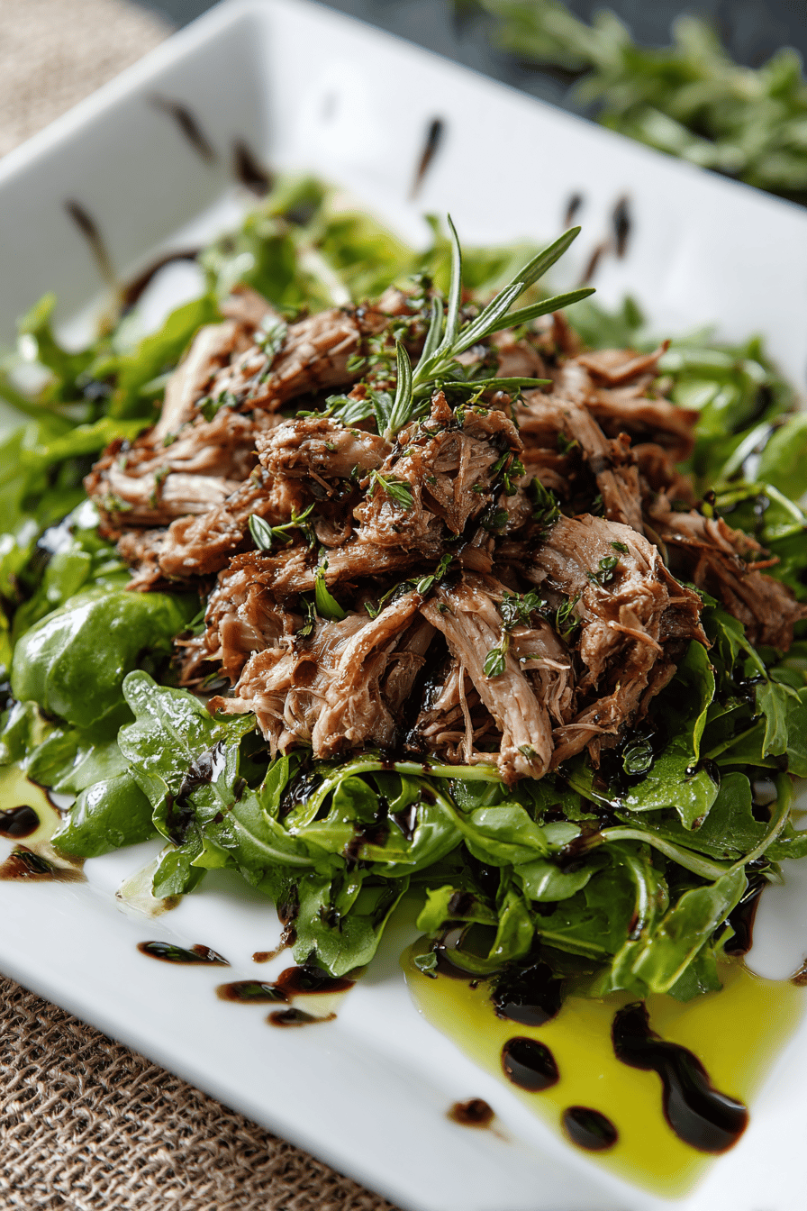 - 💡 Reheat pork slow in low oven, 120 to 130 Celsius or 250 to 265 Fahrenheit, covered dish or foil wrap to hold moisture. Oven method avoids drying edges you get in microwaves. Shred pork with fork tines; look for slight moisture sheen, not dry stringy fibre. Plate on peppery mesclun or arugula greens, drizzle good olive oil and sharp balsamic vinegar for contrast. Keeps weeks refrigerated; flavor deepens, fat seals freshness.