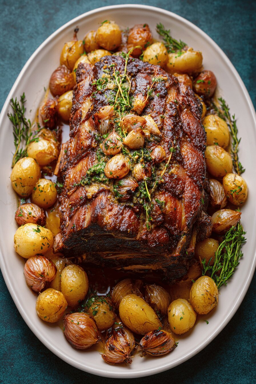 - 💡 Use heavy roasting pan for even heat distribution, no flare ups. Dark pan absorbs heat better but watch caramelization. Don’t crowd shallots and garlic; stir in skillet before transfer. Pour stock last; avoid pouring over meat or lowers crust quality. Timing flexible—1 hr 45 min typical but check temp and juices. Rest long enough to firm up slices; cutting hot loses moisture. Slice thin, against grain for tenderness not stringy chew. Use pan jus with splash of wine if desired to add depth to sauce. Don’t skip fresh thyme sprigs, dried fade fast.