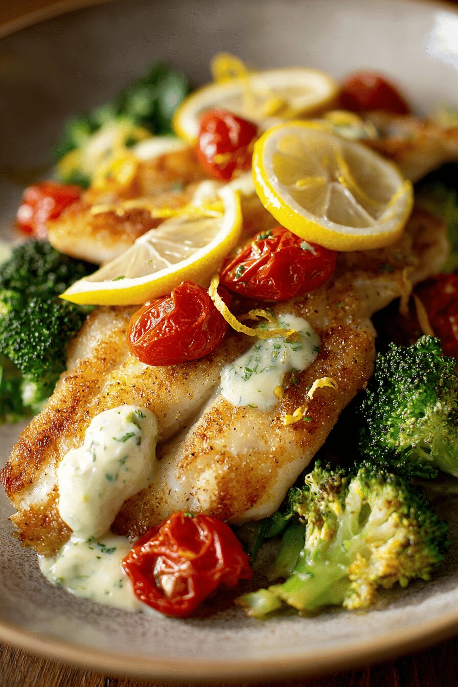- 💡 If broccolis not on hand, swap green beans or asparagus steamed same way. Cherry tomatoes can swap for halved olives or lightly roasted mini peppers for sweet warmth. Variations shift balance but keep technique same. Finish sauce with drizzle olive oil or pinch smoked paprika for smoky edge. Keep plates warm or food cools fast. Adjust cook times if fillets vary in thickness by 15 seconds up or down. Visual cues and touch save guessing.