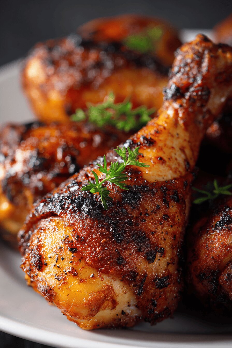 - 💡 Marinate overnight refrigerated. Pat drumsticks dry before grilling. Moisture on skin can cause steaming not roasting. Helps achieve crispy skin at finish. Skip washing chicken after seasoning—spices penetrate best unwashed. Keep close watch last 5 minutes, skin sears quickly over direct heat. Too long? Bitter burnt taste. Charred bits ok here but avoid black ash. Rest cooked chicken before serving few minutes. Juices redistribute, meat stays moist. Avoid piercing while cooking to keep juices in.