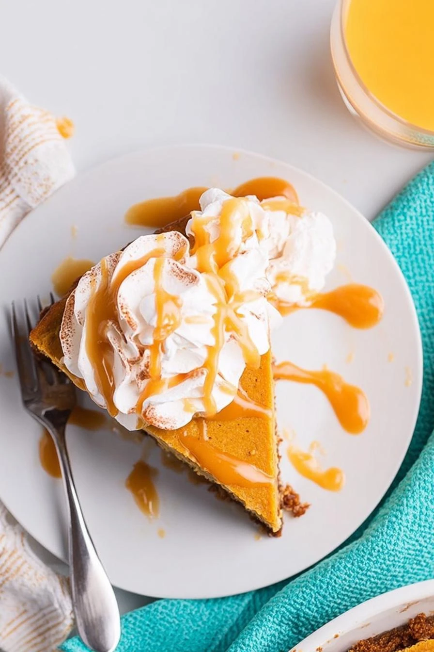 - 17 Serve each slice with a generous dollop of spiced whipped cream. Optional caramel drizzle adds sweet, buttery depth.