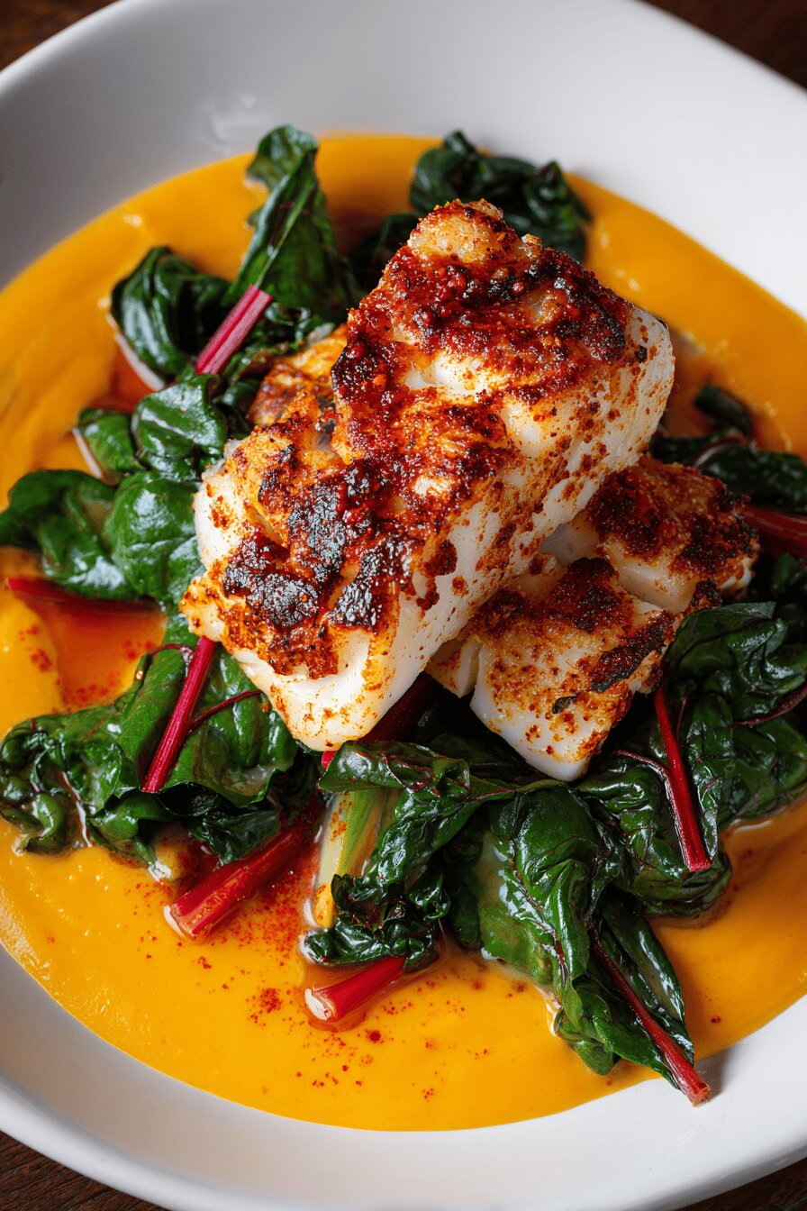 - 💡 Swiss chard: quick blanch 3 mins only. Over-blanched leaves lose color, texture—too soft, no bite, tastes flat. Fan leaves on plate next to purée quickly to keep some snap. If you want brightness, drizzle lemon zest or olive oil but keep minimal. Greens balance sweetness and heat; too soft means losing dimension on plate.