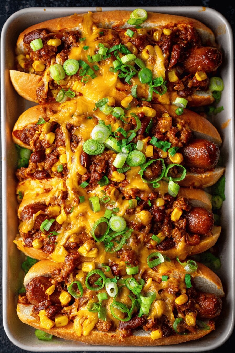 - Spread quarter of cheese sauce inside each baguette base. Overlap cooked merguez sausages snugly, juicy bursts expected while eating. Spoon chili over sausages, cover with remaining cheese sauce. Sprinkle scallions on top for crunch and freshness.
