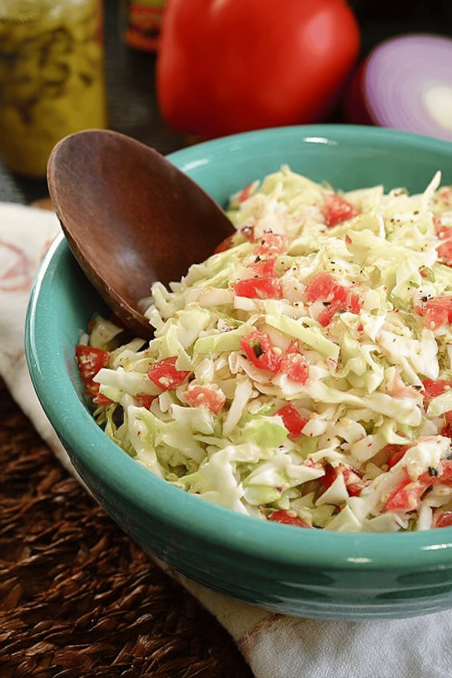- Combine cabbage mix, sliced onion, and chopped tomato in large bowl. Toss to blend textures and colors.